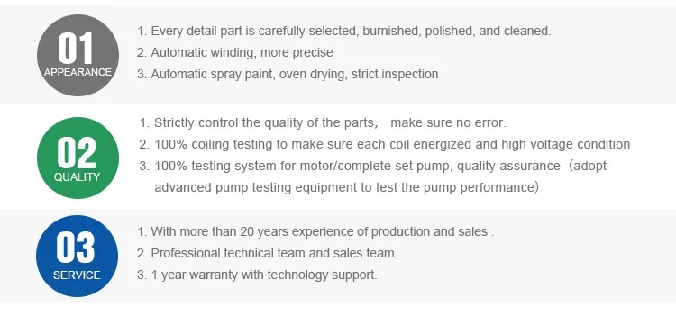 - 100% testing system for motor/complete set pump, quality assurance (adopt advanced pump testing equipment to test the pump performance).